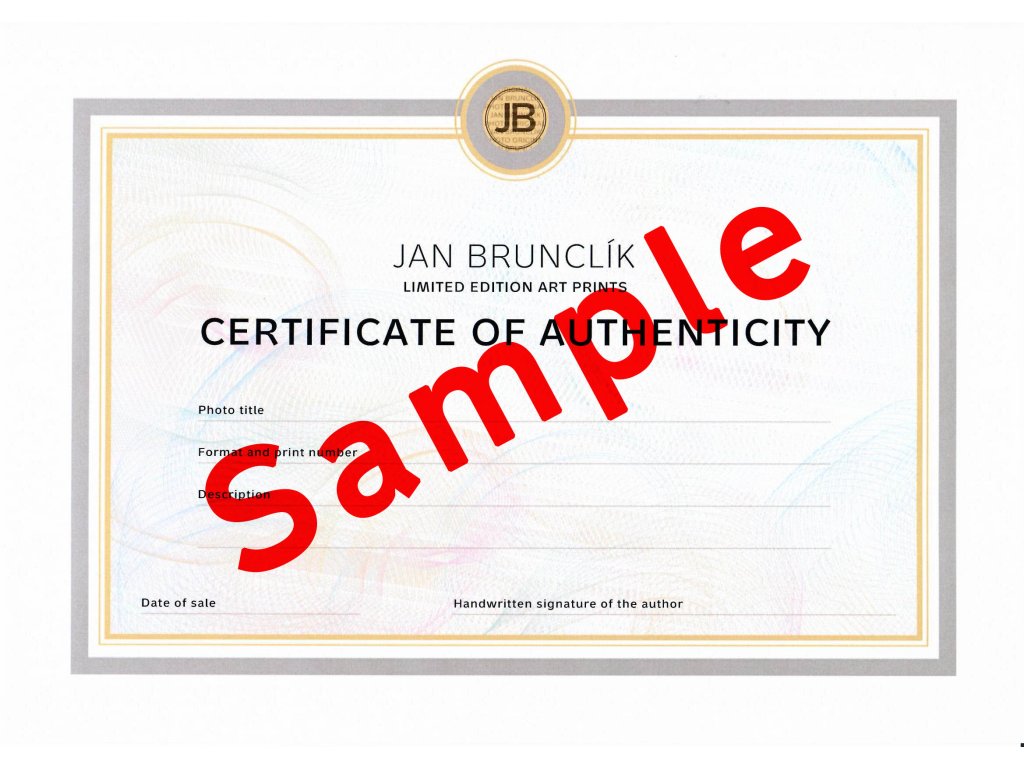 Fotografie jsou číslované na zadní straně a každému výtisku dostanete navíc CERTIFIKÁT.